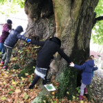 Zuvor wir an diesem Samstag neben verschiedenen Spielen auch die Vogelfutterstellen im Gartengelände der Ökostation erneuert und dann auch Blätter verschiedener Baumarten, wie Buche, Eiche, Ahorn, Linde und Birke, gesammelt, um eine Blätter-Herbar anzulegen – dies Treffen stand ganz im Thema „Bäume“ mit Lernen und Spielen und Spaß haben.