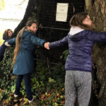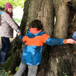 Dann haben wir noch getestet mit wie vielen Personen der Stamm, mit seinen 11,5 Metern Umfang, umrundet werden kann: Alle Kinder plus zwei Betreuerinnen wurden dazu benötigt!